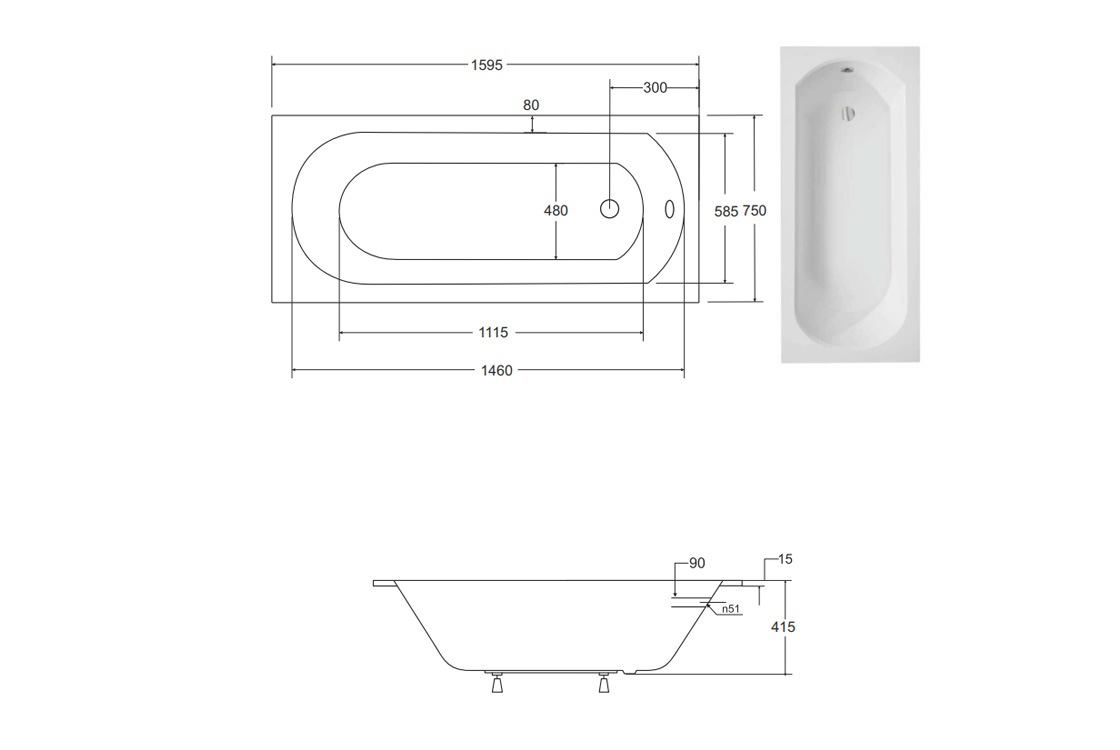 Ванна акрилова INTRICA SLIM 160х75 (соло) без ніг