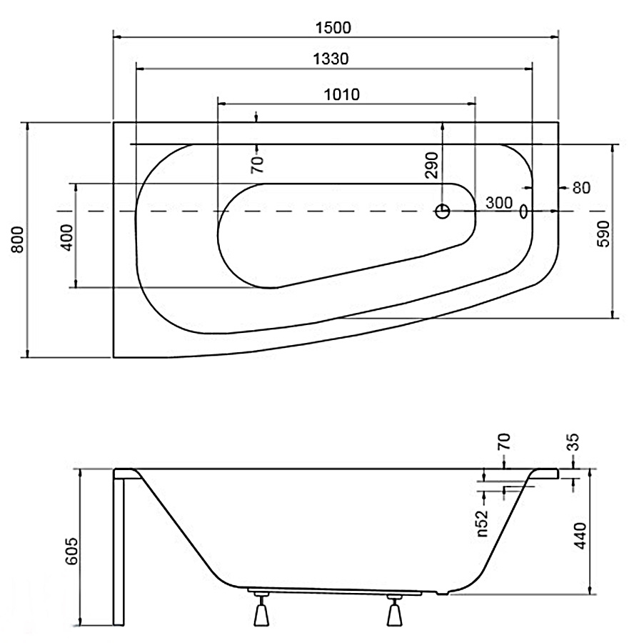Ванна акрилова LUNA 150х80 Ліва (соло) без ніг