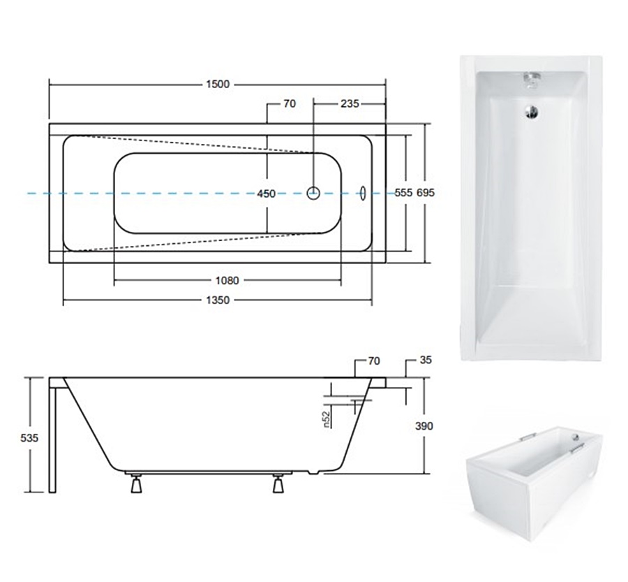 Ванна акрилова MODERN 150x70 (соло) без ніг