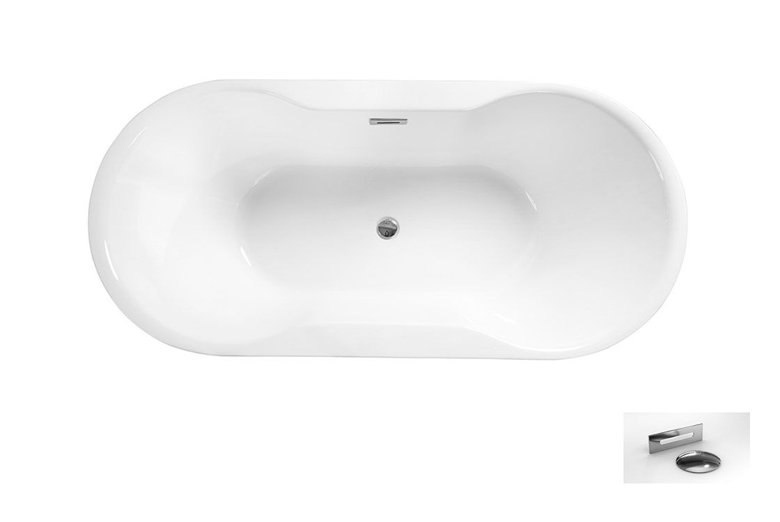 Акрилова ванна NAVIA окремостояча з класичними округлими формами та білосніжним кольором гарантовано займе почесне місце в будь-якій ванній кімнаті. Виготовлена з міцного й стійкого до пошкоджень та подряпин акрилу з антибактеріальними властивостями, ванна NAVIA набагато гігієнічніша та простіша у догляді. Дана модель комплектується сифоном клік-клак з хромованим прямокутним переливом.