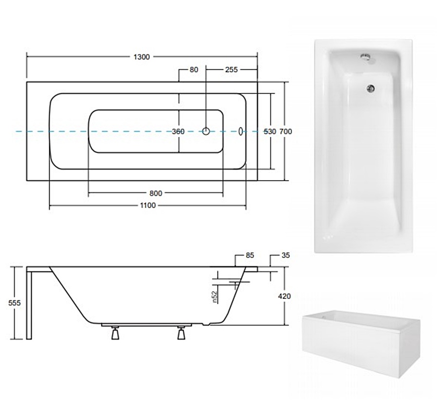 Товщина акрилу на бортах: 4-5 мм. Ванна додатково комплектується ніжками.