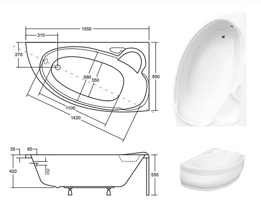 Ванна акрилова WENUS FINEZJA NOVA 155х95 Права (соло) без ніг і обудови