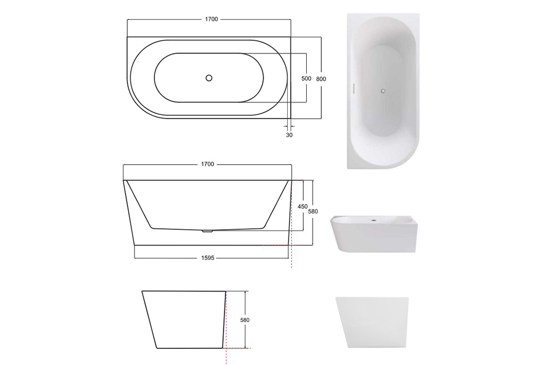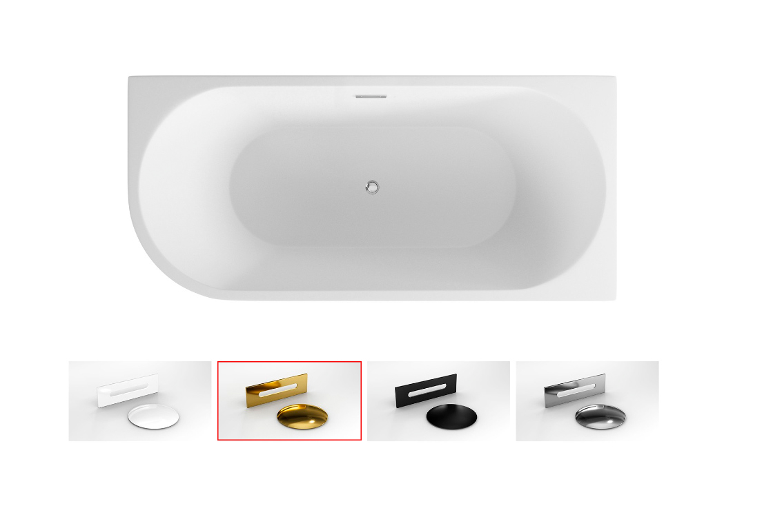 Ванна комплектується сифоном click-clack з переливом в кольорі золото.