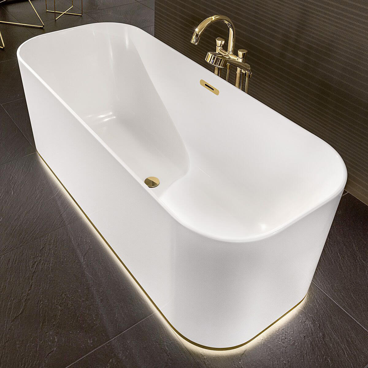Хромовані клапан push-to-open і перелив входять в комплект поставки в якості стандартної опції. Не входить в комплект поставки: дистанційне керування функцією Emotion. За допомогою дистанційного керування можна управляти як підсвічуванням ванни, так і меблів і дзеркала. Діаметр: 52 mm. Ванна безшовна