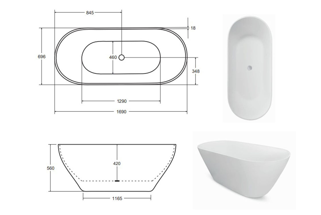 Ванна MOYA ретро виготовлена з мінерального лиття Mineral DuraBe. Зовнішня частина ванни оздоблена в чорному матовому кольорі, внутрішня біла глянцева. Комплектується сифоном клік-клак в кольорі хром.