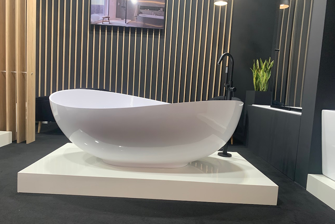 Вільностояча біла ванна SIYA 172х100 з сифоном клік-клак в кольорі хром виготовлена з Mineral DuraBe (мінеральне лиття).