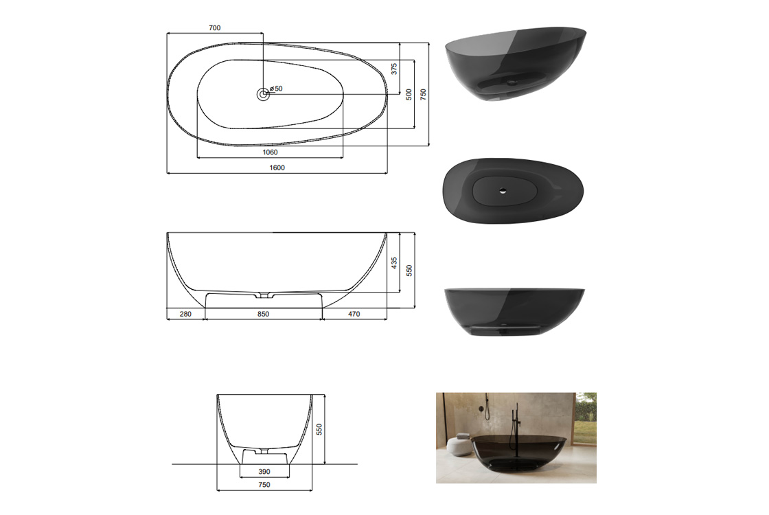 Ванна XARA вільностояча виготовлена з матеріалу ResiCast, який дозволяє створювати неймовірно красиві моделі з дуже тонкими краями, зберігаючи прии цьому свою функціональність. Матеріал являє собою суміш синтетичної смоли з добірними пігментами, що забарвлюють масу, з якої відлиті вироби. Відрізняється прозорістю та ідеально гладкою поверхнею. Матеріал з теплоізоляційними властивостями, завдяки яким тривалий час зберігає температуру води та стійкий до УФ-випромінювання.Ванна комплектується сифоном клік-клак в кольорі хром. Об'єм ванни: 300 л