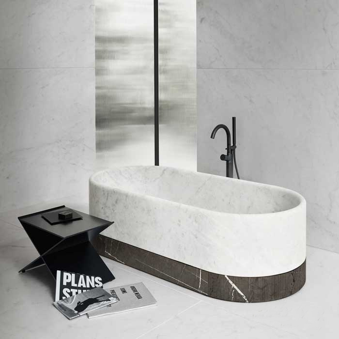 Ванна з штучного каменю Noorth Milldue Edition Roma, 170x80, окремостояча, цоколь Grafite, обробка Bianco Car (5079.A)