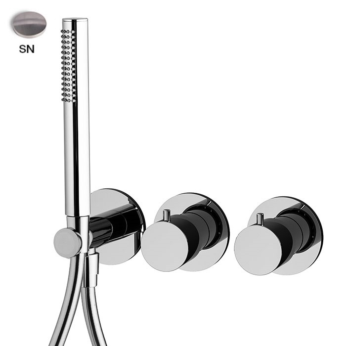 Вбудований термостатичний змішувач для душу Fima Carlo Frattini на 2 джерела з душовим комплектом BRUSHED NICKEL (F3149X9SN)