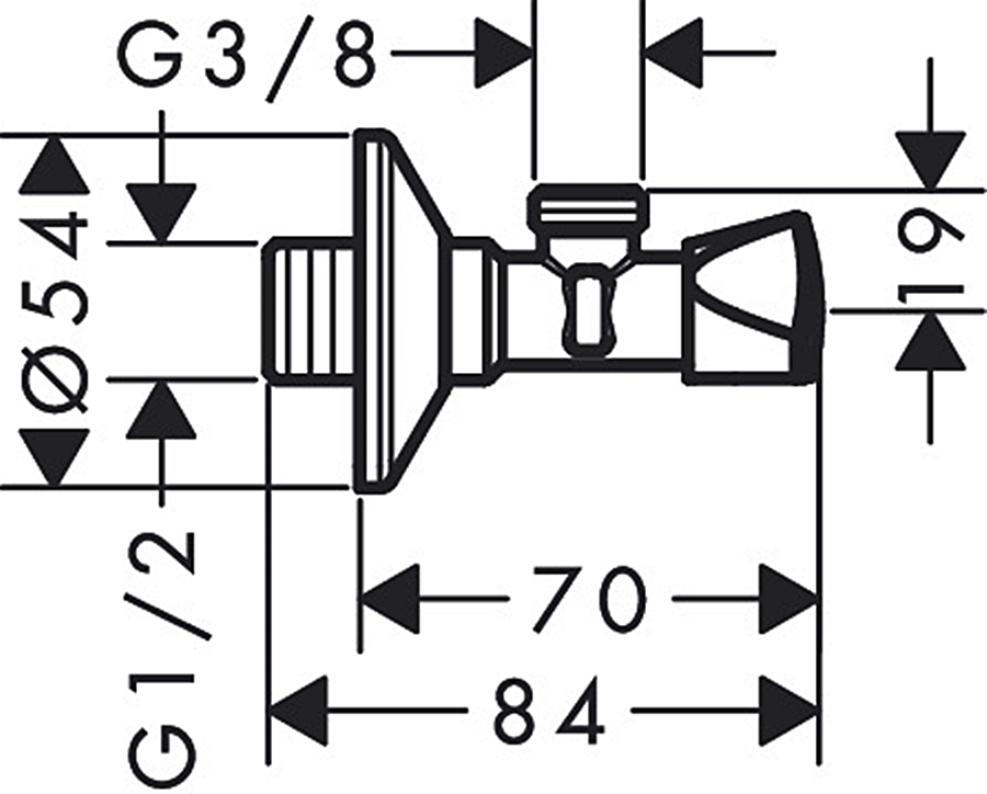 Вентиль під'єднання кутовий E 1/2 - 3/8 " (13902000)