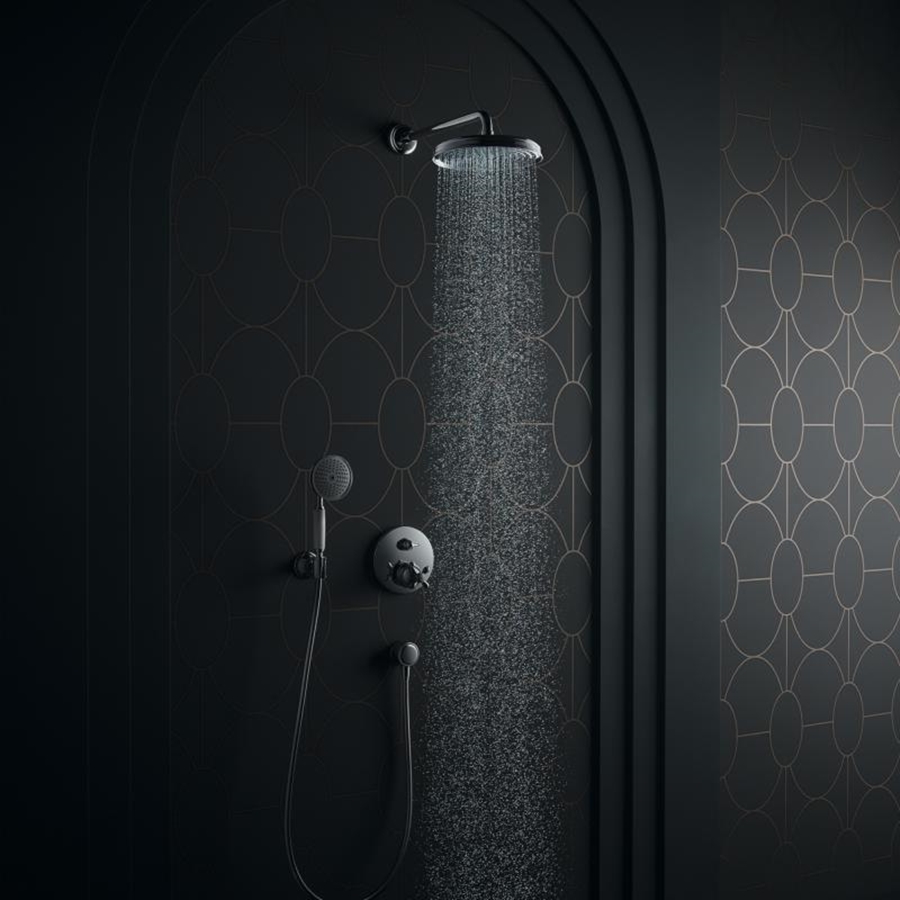Axor розмір душової лійки: 240 мм,тип розпилення: RainAir,матеріал розпилювального диска: метал,монтаж: стеля, стіна,кульовий шарнір: верхній душ регулюється кутом нахилу,максимальна витрата води при 3 барах: 17 л/хв,необхідне додаткове обладнання: стельовий або стіновий кронштейн (не входить в комплект).