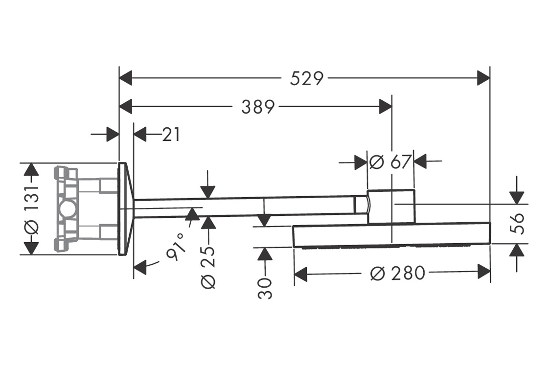 Верхній душ Axor One 280 2jet зі стіновим кронштейном, Chrome (48492000)