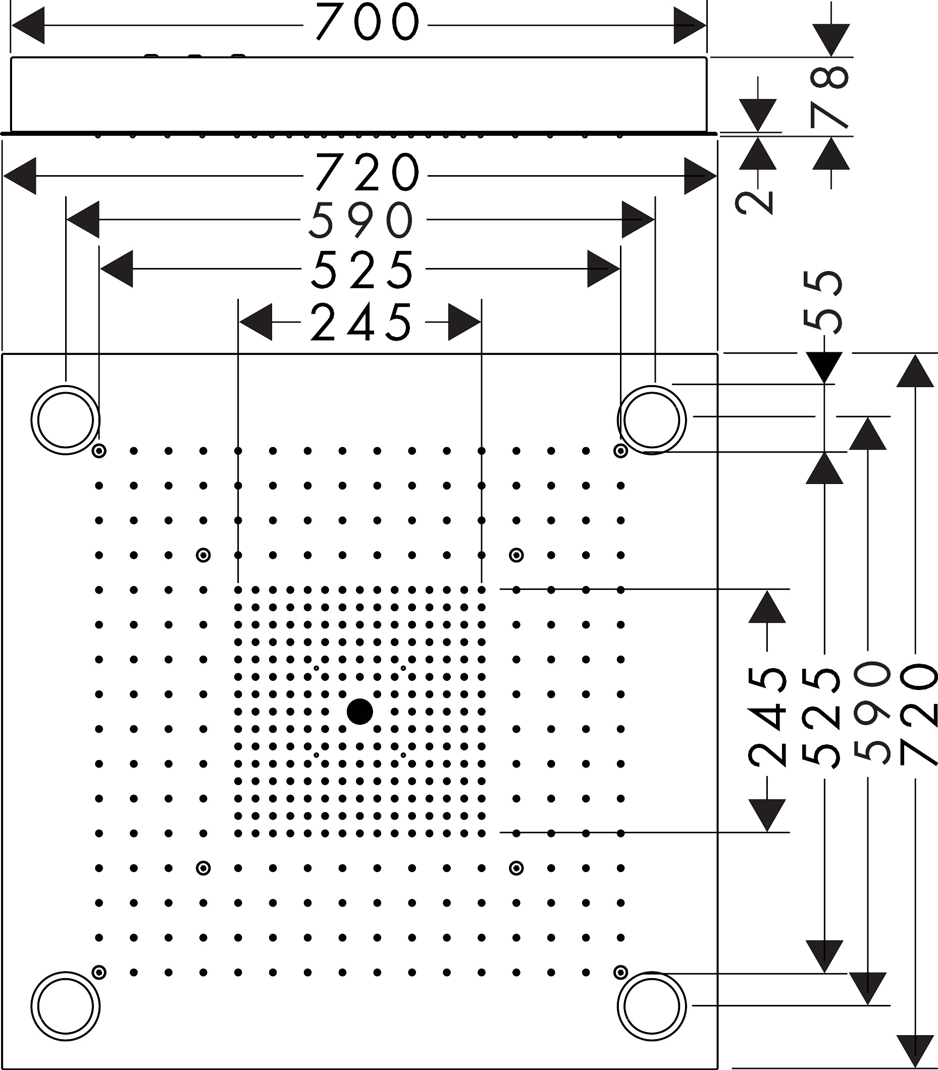 Верхній душ Axor ShowerHeaven 720х720 3jet з підсвіткою 2700 К, монтаж зі стелі (10627800) Stainless