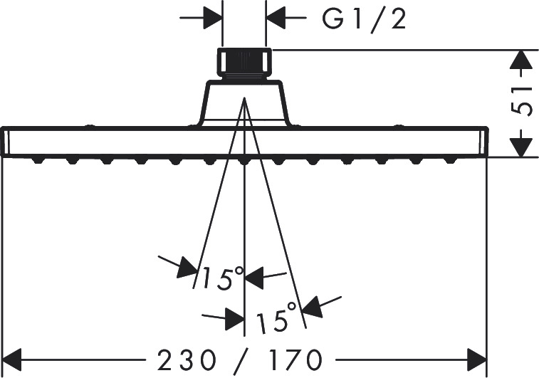 HANSGROHE Максимальні витрата води при 3 барах: 12,4 л / хв. 1 тип струменя: Rain. Кришка з пластику. Верхній душ знімається, можна мити окремо