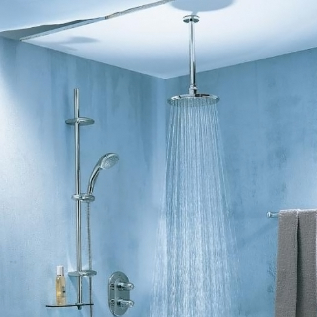 Верхній душ Grohe Rainshower Cosmopolitan 310 (26067000) з стельовим душовим кронштейном.