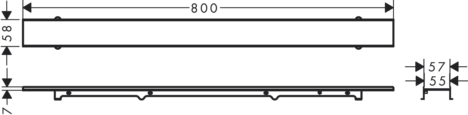 Підходить для будь-якого типу та товщини плитки. Товщина плитки повинна бути до 40 мм. Легко очищуєтсья. Ширина решітки: 58 мм. Додаткова довжина 50 мм з обох сторін. Можна скоротити до 700 мм