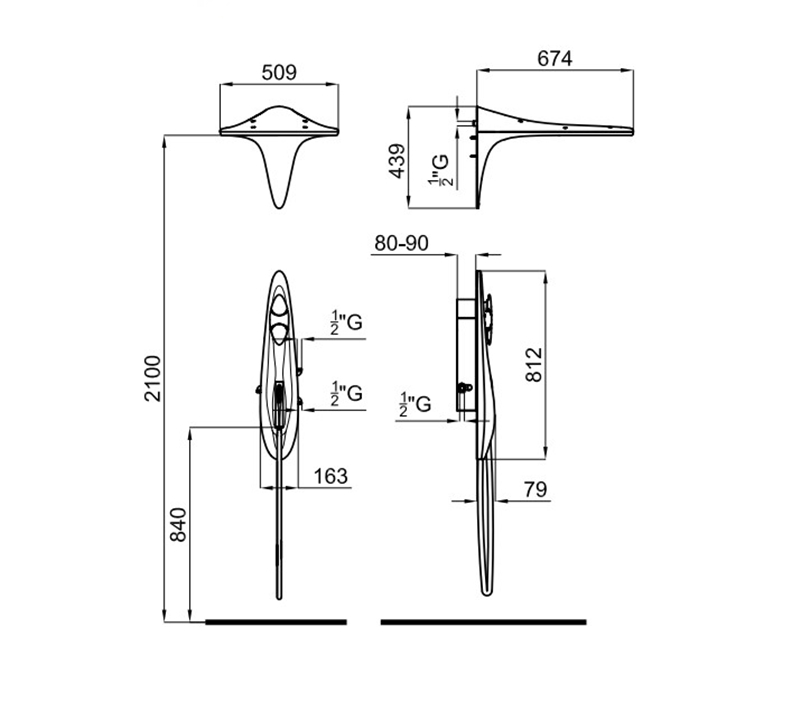 Душова стійка з верхнім душем. Включає в себе змішувач і ручний душ з вбудованим тримачем