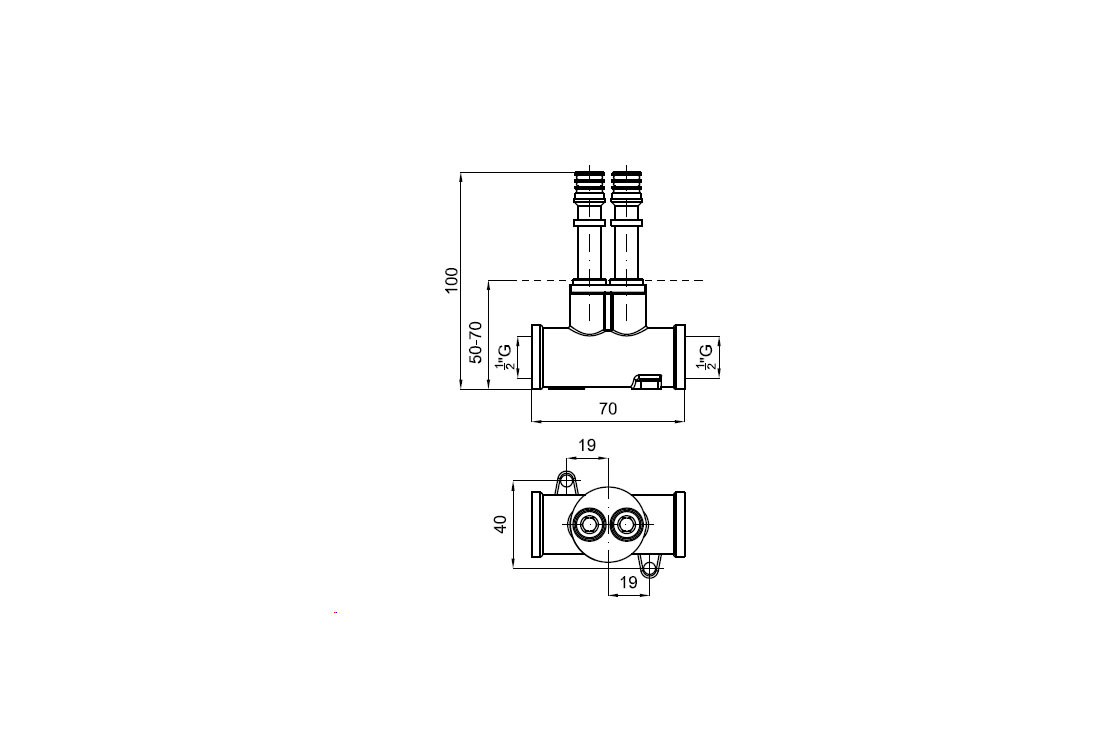 Внутрішня частина одноважільного змішувача для гігієнічного душу. Витрата при 3 барах становить 8,6 л/хв.