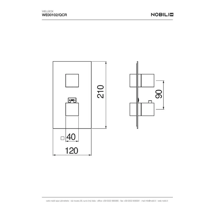 WE00102/QCR Змішувач для душу вбудовуваний з термостатом на 2 джерела без внутр частини хром Nobili ІТАЛІЯ