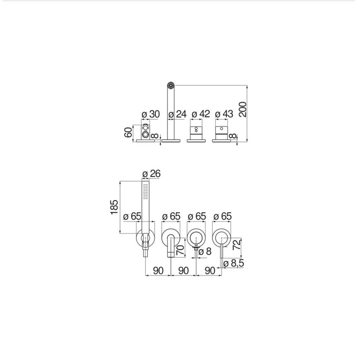 WEBK110/91TBM Змішувач для ванни з душовим комплектом вбудовуваний чорний мат ABOCC00158/36+KWELL00100/91TBM+ADUPL00146/32 Nobili ІТАЛІЯ