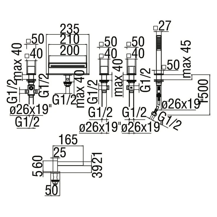 WEBK204/QCR Змішувач врізний на борт ванни 5 отворів Хром Nobili ІТАЛІЯ