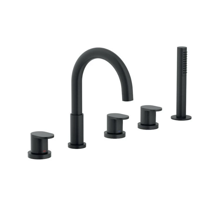 WEBK204/UPBM Змішувач врізний на ванну Up, на 5 отворів, витяжний ручний душ, чорний матовий Nobili ІТАЛІЯ