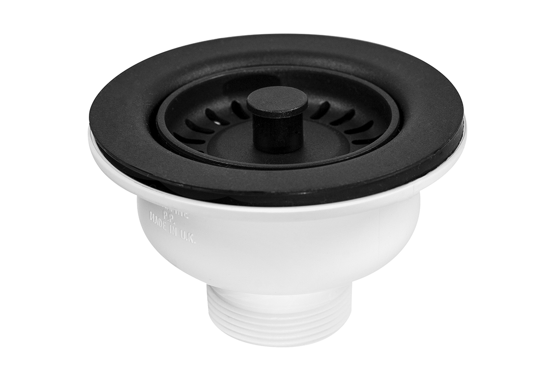Злив для кухонної мийки 113 мм з круглим переливом, чорний мат FSW50P-POL-25-MB