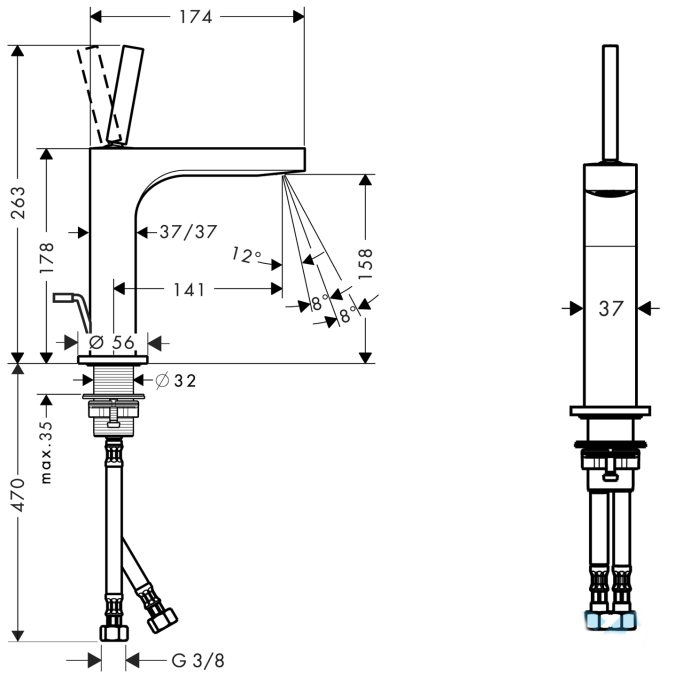 Швидкість потоку при 3 бар: 5 л/хв.Керамічний картридж.Розмір з'єднання: DN15.Технологія QuickClean дозволяє легко видалити бруд та накип з аератора та постійно підтримувати його у чистоті. А нова технологія EcoSmart зекономить вам до 60% на витратах води без втрати комфорту порівняно з іншими змішувачами. Таких результатів вдалося досягти, завдяки додаванню повітря до води і за допомогою спеціального обмежувача потоку. Змішувач "AXOR Citterio 39031000" має вмонтований у вилив аератор, який легко дозволяє регулювати кут нахилу струменя. Розміри моделі добре збалансовані і чудово підходять для монтажу на стільницю до накладних умивальників.Керування потоком та температурою води відбувається за допомогою вертикального джойстика. Дизайнери наділили змішувач чистими лініями, простим дизайном та природнім кольором.