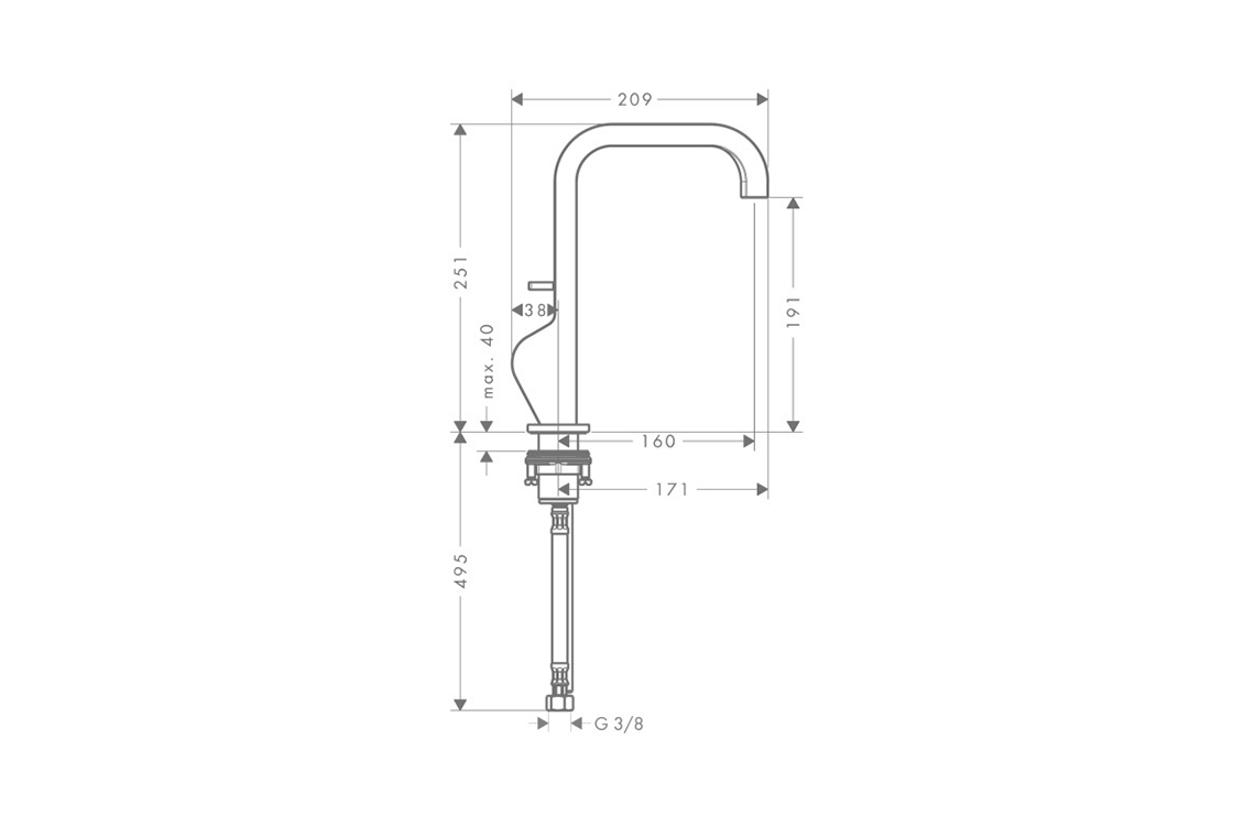 складається з: одноважільного змішувача для раковини, зливного комплекту,ComfortZone 190,виступ: 160 мм,висота носика: 191 мм,тип спрею: звичайний спрей,максимальна витрата при 3 бар: 5 л/хв,розташування ручки збоку: нижня сторона біля корпусу основи (не підходить для настільних умивальників).