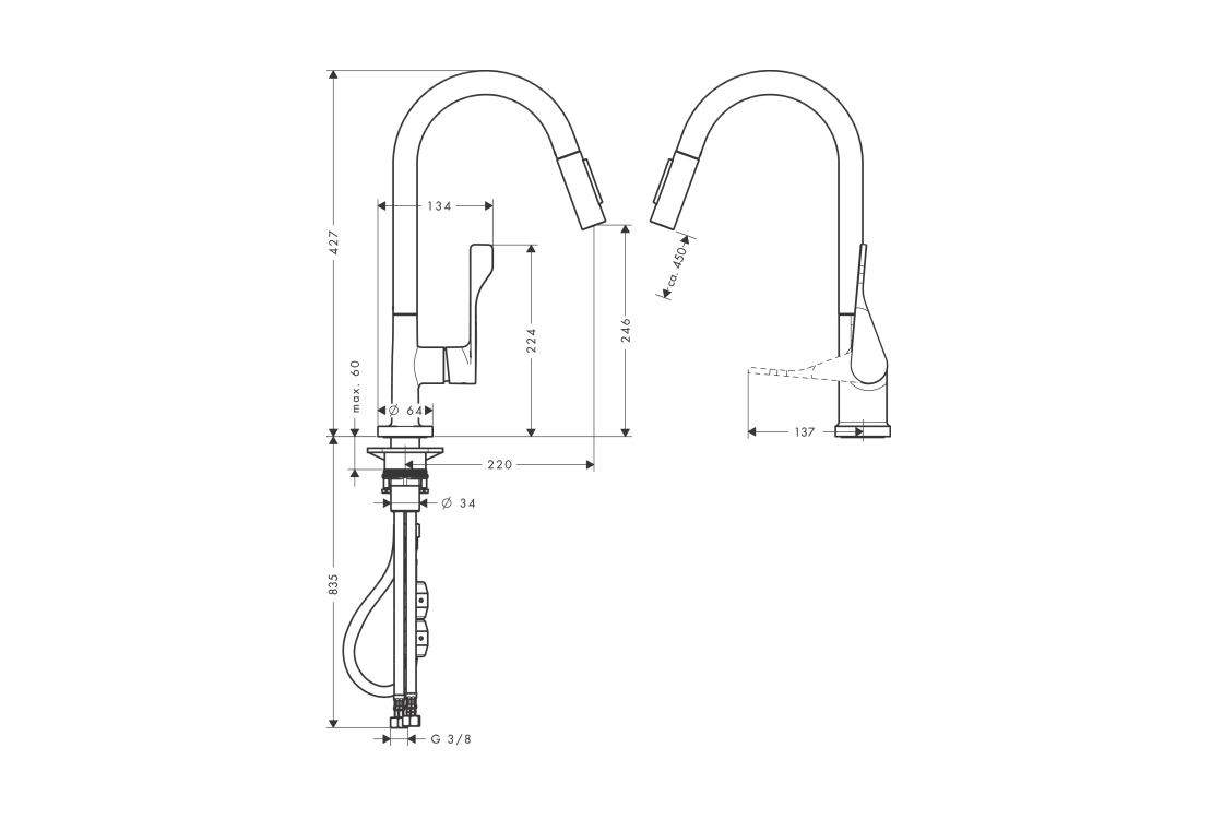 Відгуки про "Змішувач Axor Citterio 250 2jet для кухні з витяжним виливом (39835140), Brushed Bronze"