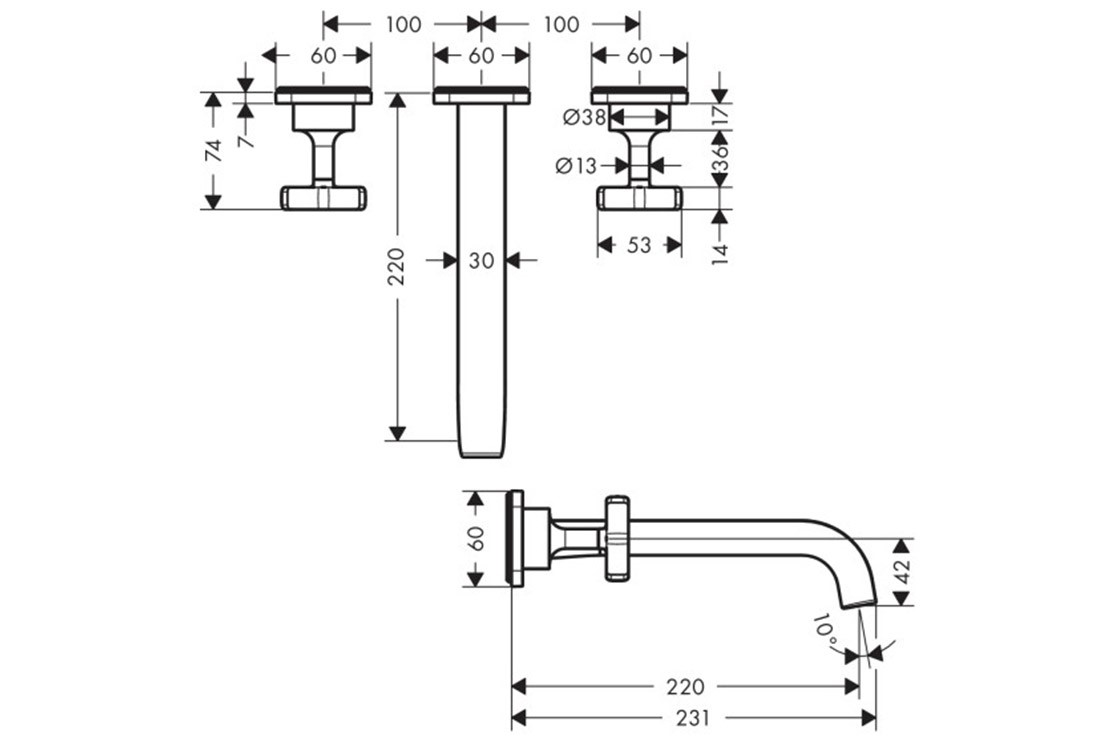 Відгуки про "Змішувач Axor Citterio E 220 для умивальника зі стіни на 3 отвори Matt Black 36107670"
