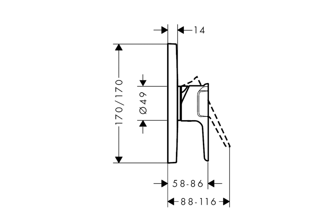 Змішувач Axor Citterio E прихованого монтажу для душу, Chrome 36655000