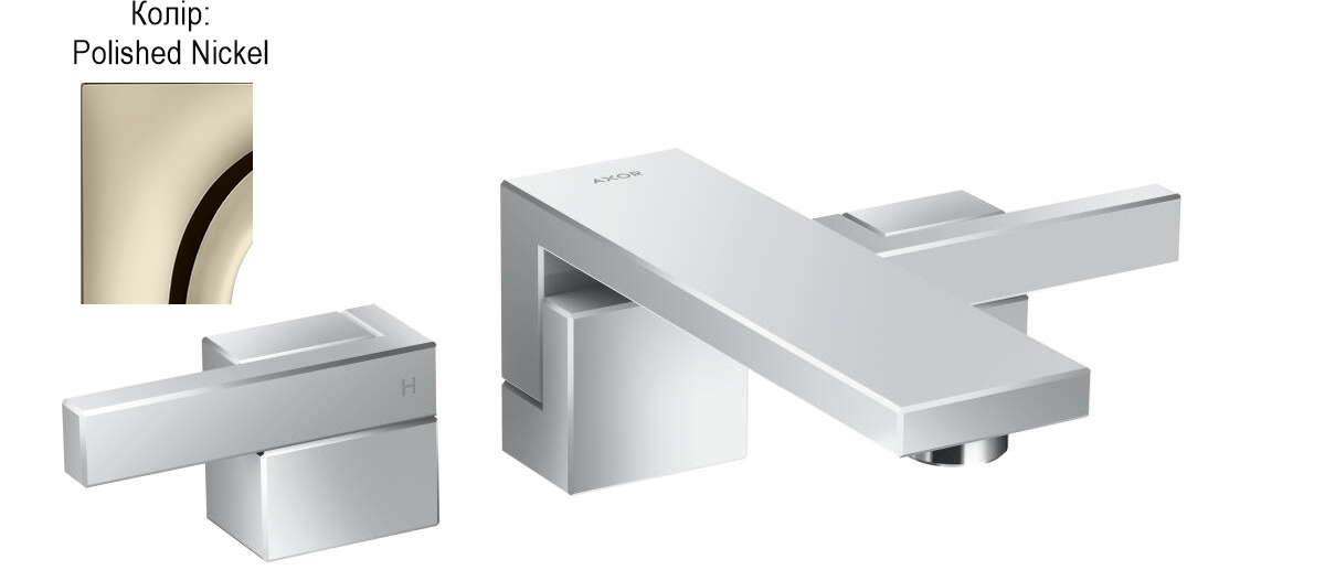 Відгуки про "Змішувач Axor Edge 190 для умивальника на 3 отвори зі стіни з push-open Polished Nickel 46060830"