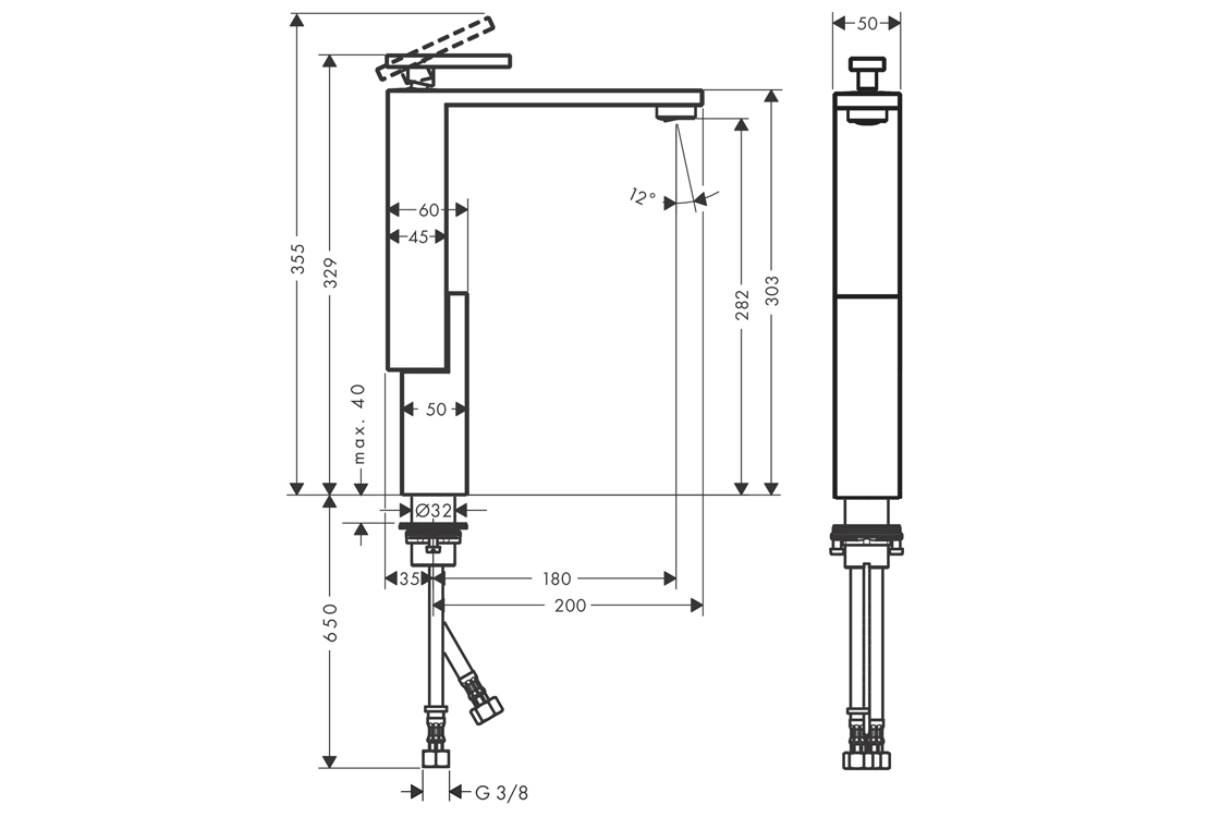 складається з: одноважільного змішувача для умивальника, зливного комплектуComfortZone 280,проекція: 180 мм,висота носика: 282 мм,варіант ручки: важільна ручка,тип спрею: звичайний спрей,максимальна витрата при 3 барах: 5 л/хв,керамічний картридж,регулюється обмеження температури,підходить для безперервних проточних водонагрівачів,зливний набір Push-Open G 1¼,тип з'єднання: з'єднання G ⅜,приєднувальний розмір: DN15.
