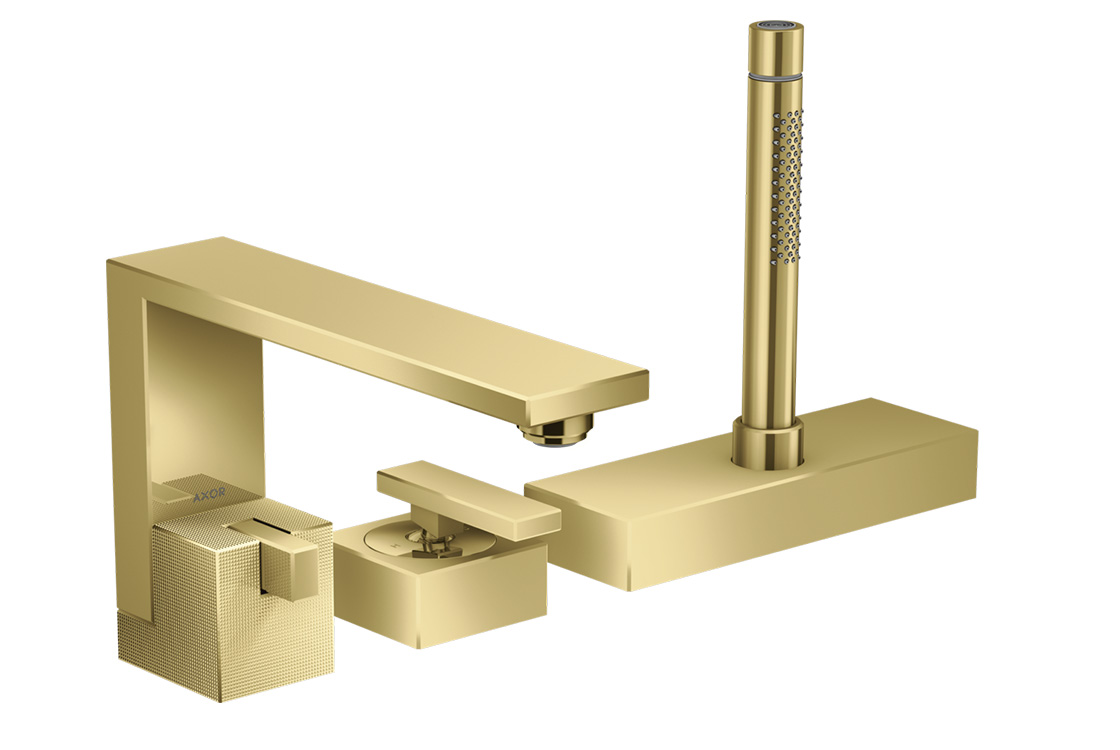 Змішувач Axor Edge на край ванни 3 отвори Diamond Cut, Polished Gold Optic (46431990)