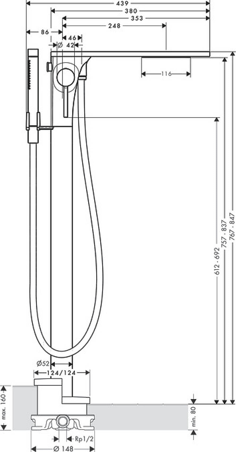 Змішувач Axor Massaud для ванни підлоговий, хром 18450000
