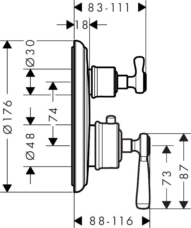 Змішувач Axor Montreux прихованого монтажу для душу Lever, хром 16801000