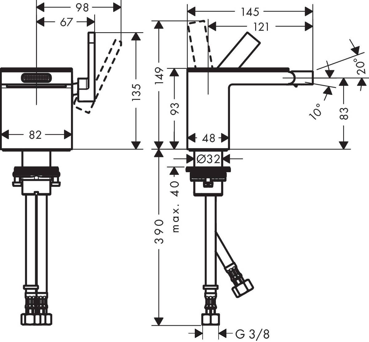 складається з: одноважільного змішувача для біде, зливного комплекту,проекція: 121 мм,висота носика: 83 мм,максимальна витрата при 3 барах: 5 л/хв,необхідне додаткове обладнання: накладка для змішувача MyEdition 117 (не входить в комплект).
