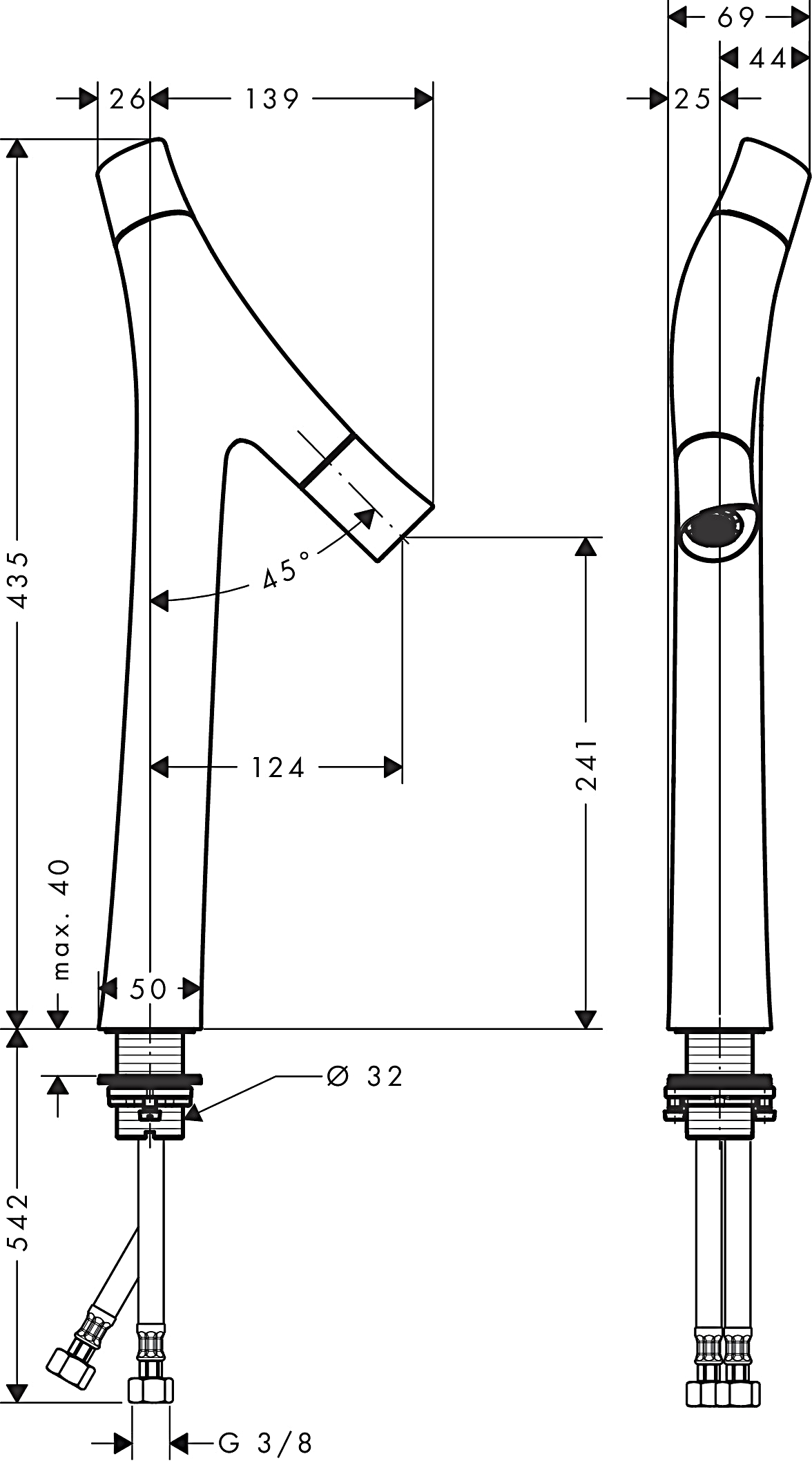 Витрата при 3 барах: 3.5 л/хв. Максимальні витрати води: 5 л/хв.