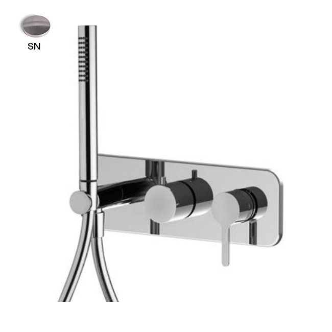 Змішувач для душу Fima Carlo Frattini Snap, на 2 виходи, з душовим комплектом, зовнішня частина, Brushed Nickel (F3129WX2SN)