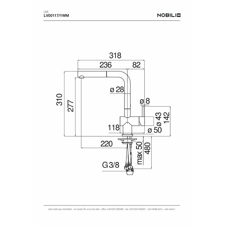 Змішувач для кухні Live Polar White (LV00117-1WM), Nobili