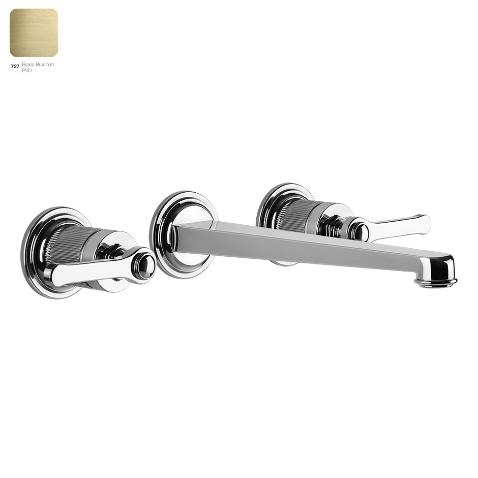 Змішувач для умивальника Gessi Venti 20, на 3 отвори, настінний, довгий вилив, Bruched Brass PVD (65090727)