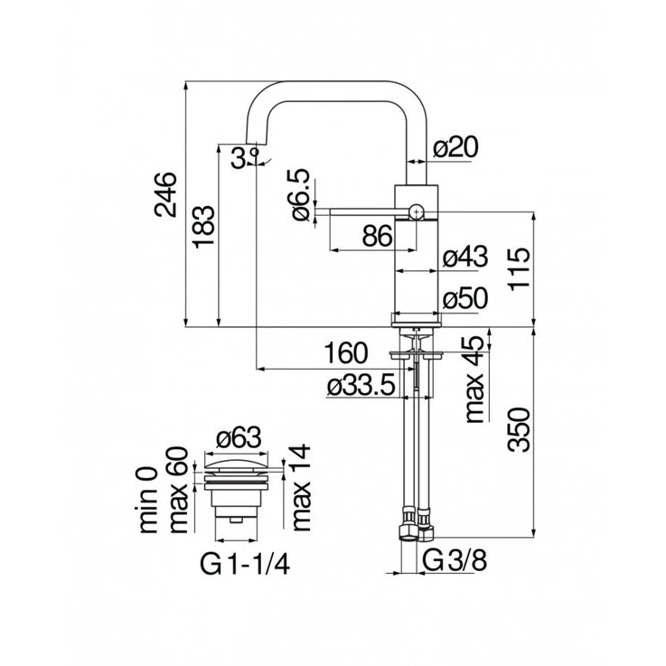Змішувач для умивальника Velis (VE125118-2CR), Nobili