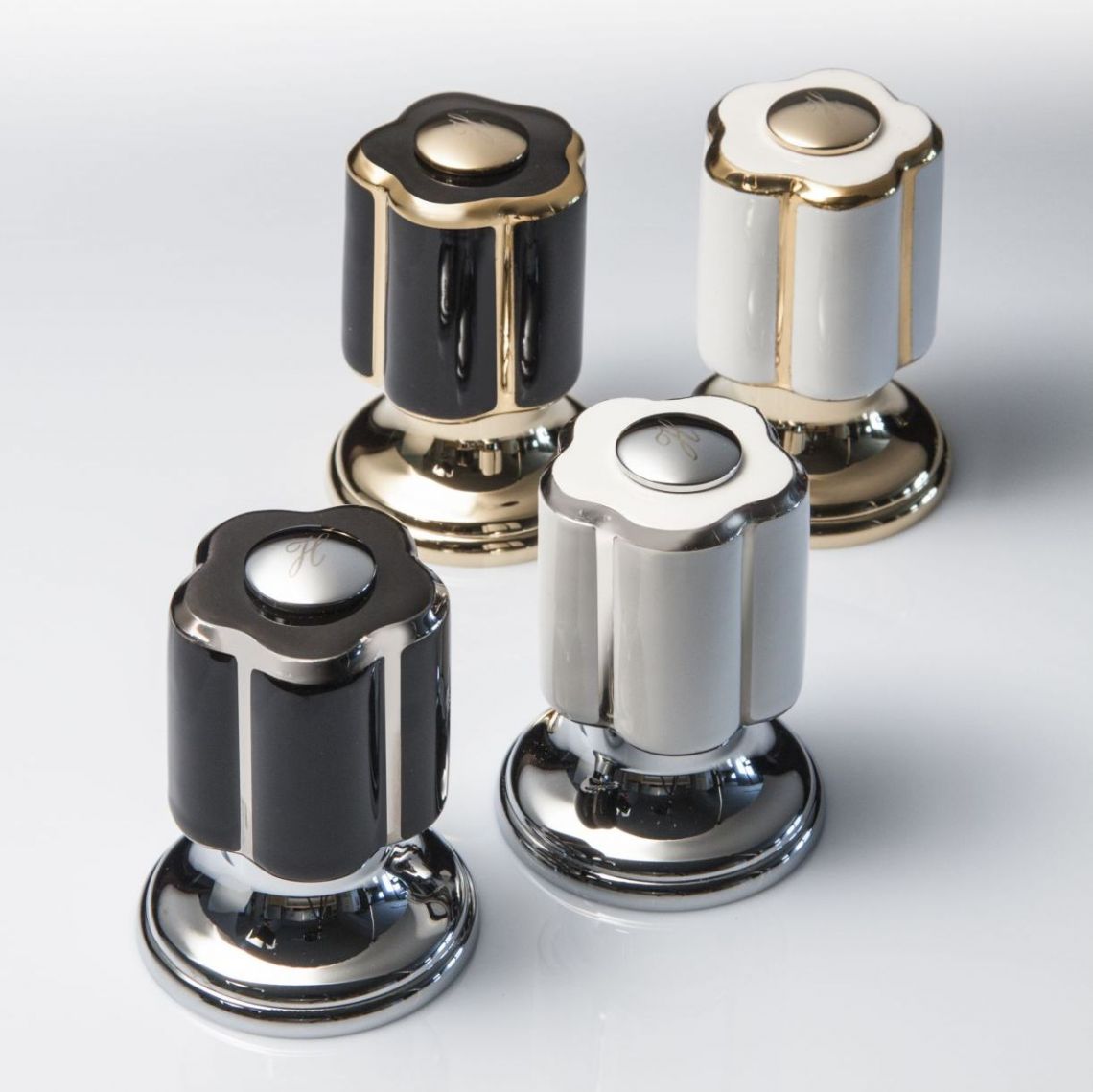Особливості змішувача для ванни для підлоги Bongio Fleur Noir на 2 отвори, золото/чорний/золото (12528OR00):
