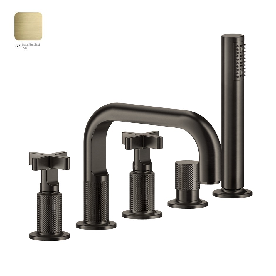 Змішувач для ванни Gessi Inciso, на 5 отворів, із виливом, Bruched Brass PVD (58140727)
