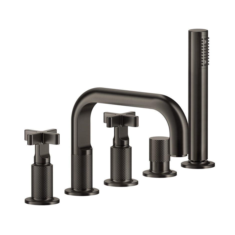 Змішувач для ванни Gessi Inciso, на 5 отворів, зі зливом, Black Metal Bruched PVD (58140707)