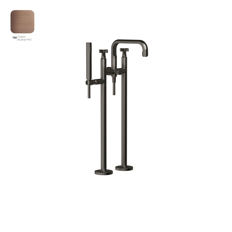 Змішувач для ванни Gessi Inciso, прихований монтаж, підлоговий, з душовою лійкою, Copper Bruched PVD (58129708)