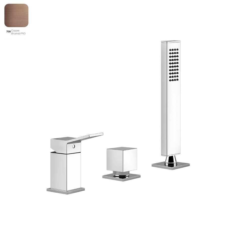 Змішувач для ванни Gessi Rettangolo K, на 3 отвори, Copper Bruched PVD (53043708)