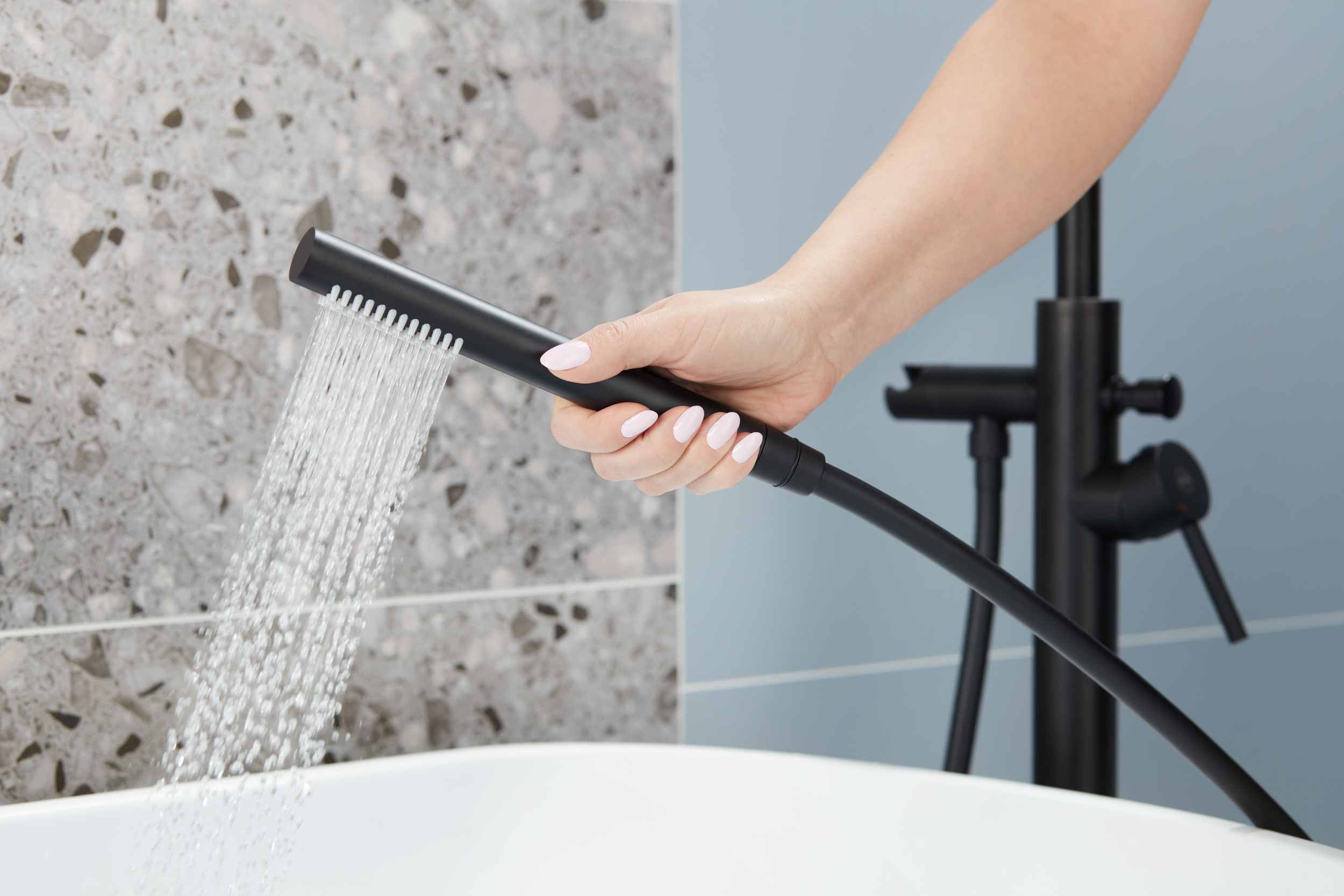 Змішувач для ванни KFA ARMATURA MOZA BLACK 5035-510-81 вільностоячий - ефективне рішення для великої ванної кімнати. Завдяки регулюванню кута нахилу використання душової лійки стає більш комфортним. Змішувач обладнано практичною монтажною коробкою з функцією змиву. Що важливо, промивний шланг йде в комплекті відразу при покупці. Додатково корпус оснащений мікрорівнем, що полегшує збірку.
