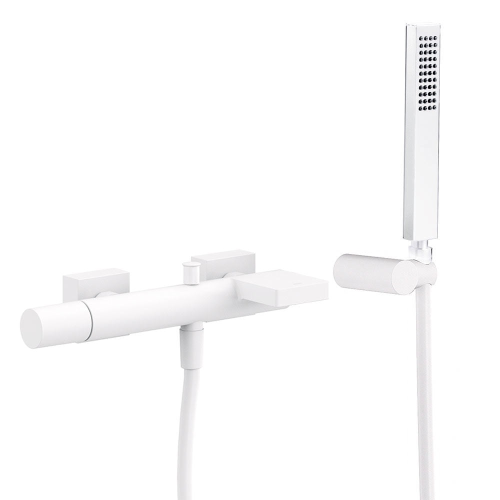 Змішувач для ванни Tres Project-Tres, з ручним душем, тримачем і шлангом, білий матовий (21117001BM)